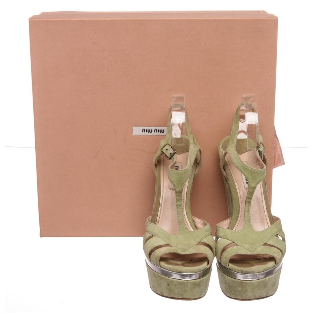 Miu Miu Pistacchio Suede Camoscio Lame Wedges Heels Shoes