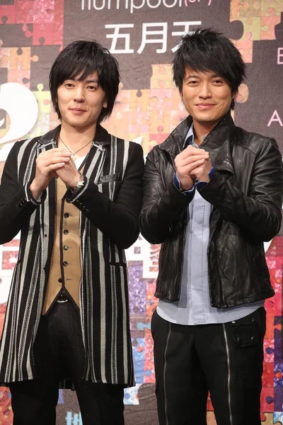 Ryuta Yamamura Of Japanese Band Flumpool Left And Wen Shang Yi Better Known By His Nickname Monster Of Taiwanese Rock Band Mayday Pose At A Press Stock Photo Alamy