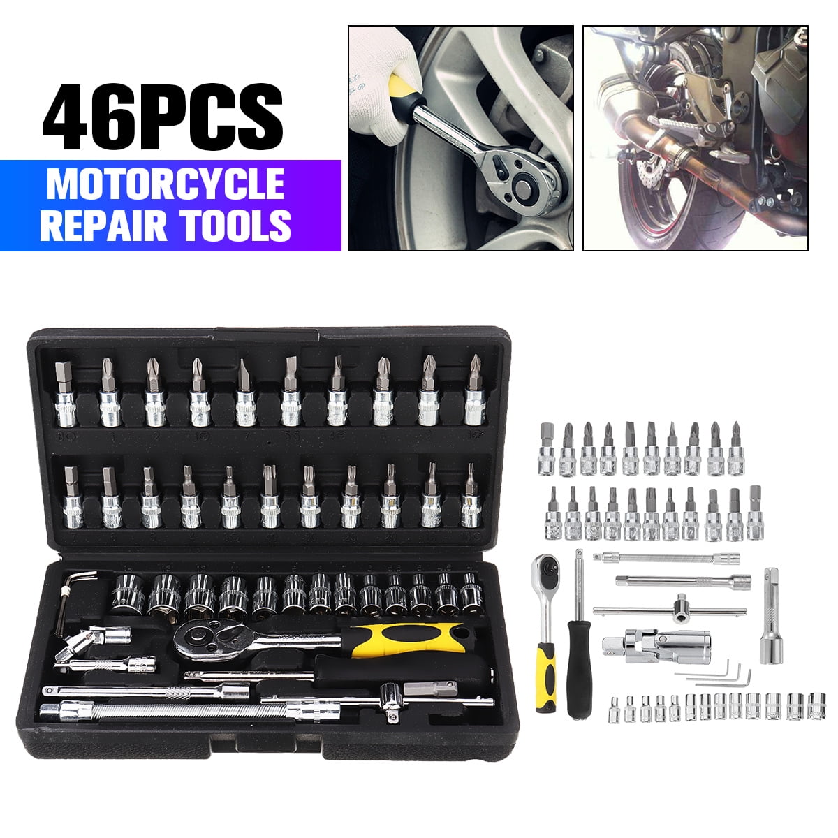 46pcs Auto And Motorcycle Tool Kit Repair Tool Ratchet Wrench Drive Socket Set With Plastic Toolbox Storage Case Walmart Com Walmart Com