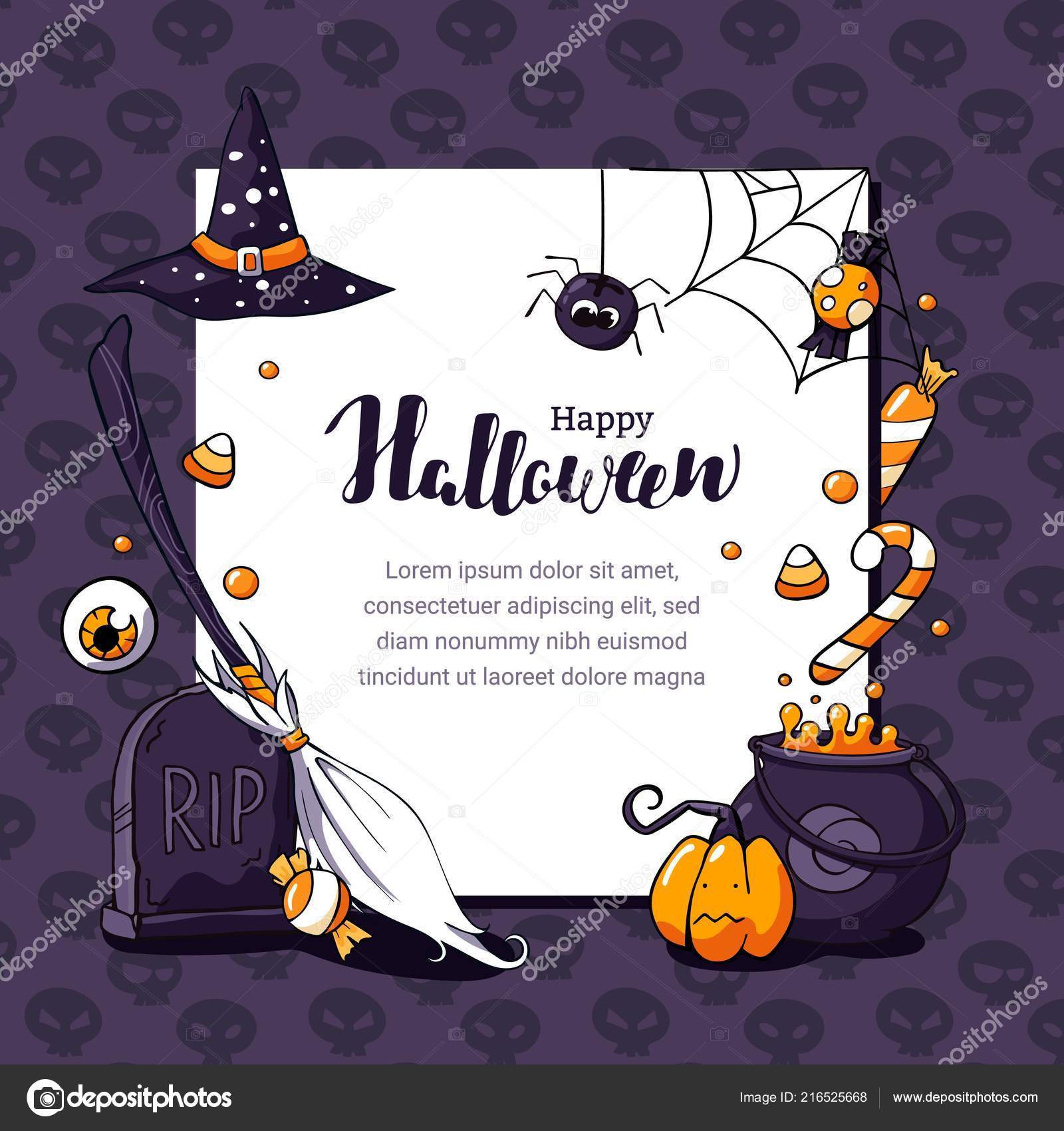 Halloween Postcard Vector Illustration Scary Theme Space Text Halloween Card Stock Vector C Alanveob 216525668